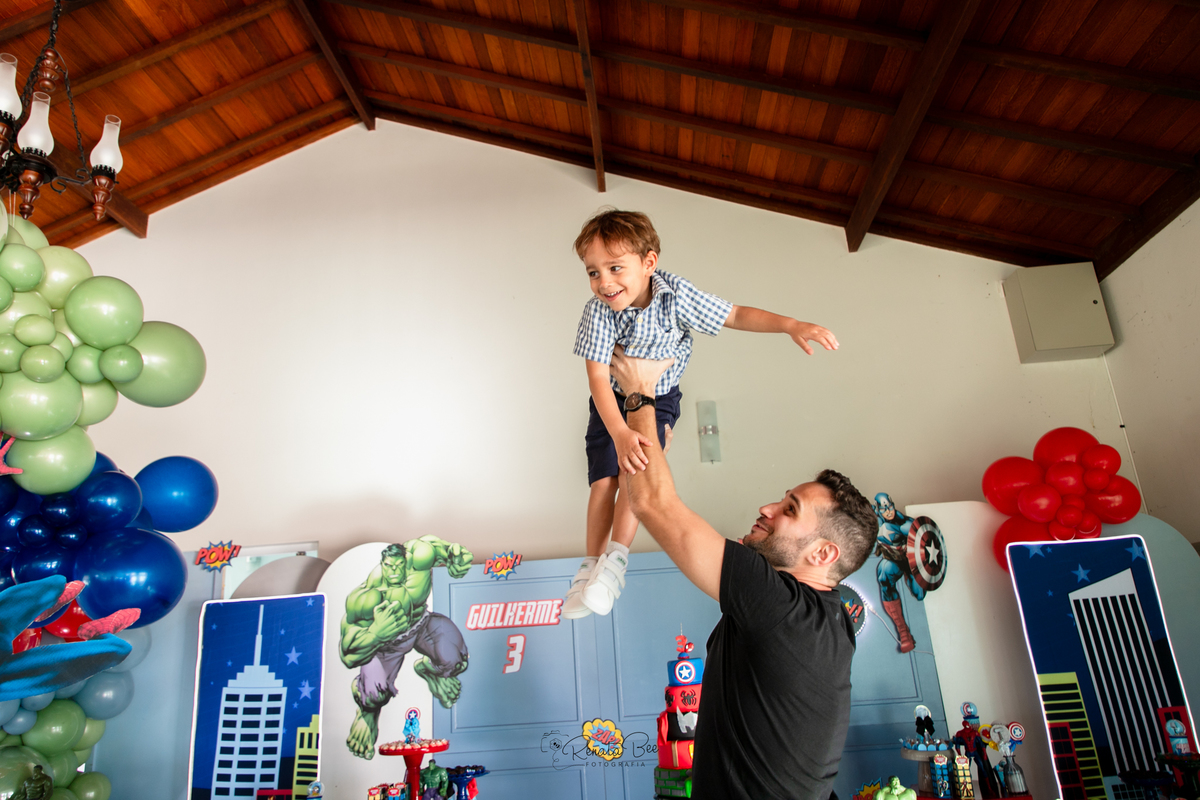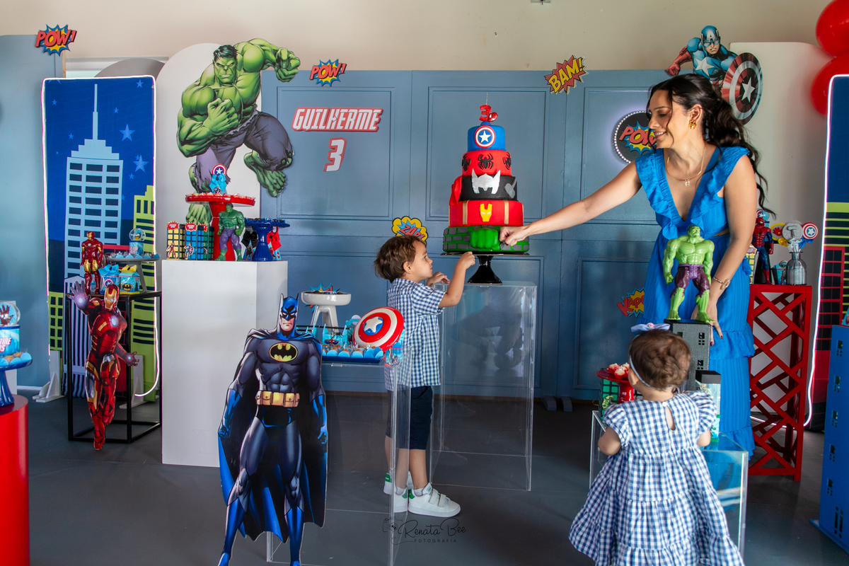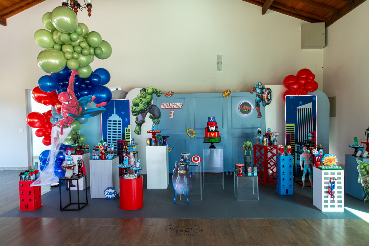 Guilherme comemorou seu terceiro aniversário com uma festa repleta de emoção e aventura! O tema da festa foi 'Super-Heróis', e a diversão estava garantida. A festa estava repleta de decorações incríveis com os símbolos dos super-heróis e balões coloridos. Mamãe Amanda planejou a festa com muito carinho e caprichou nos mínimos detalhes. Os olhinhos do Guilherme brilharam de alegria enquanto celebrava seu terceiro aniversário ao lado de amigos e familiares e pode conhecer pessoalmente seus personagens preferidos. E assim, a festa 'Super-Heróis' se tornou uma aventura inesquecível, cheia de diversão, risadas e momentos especiais.