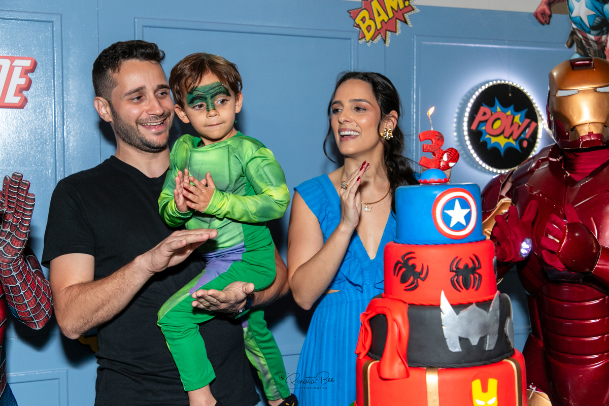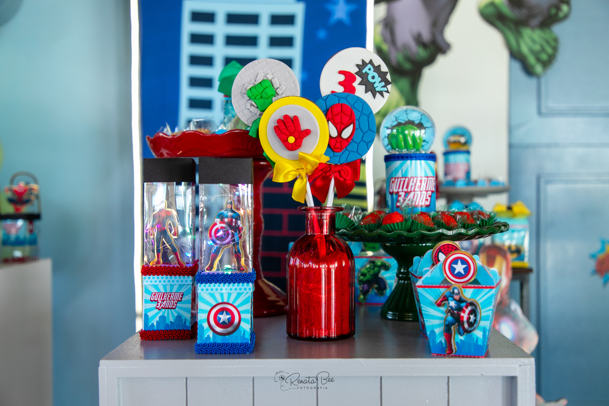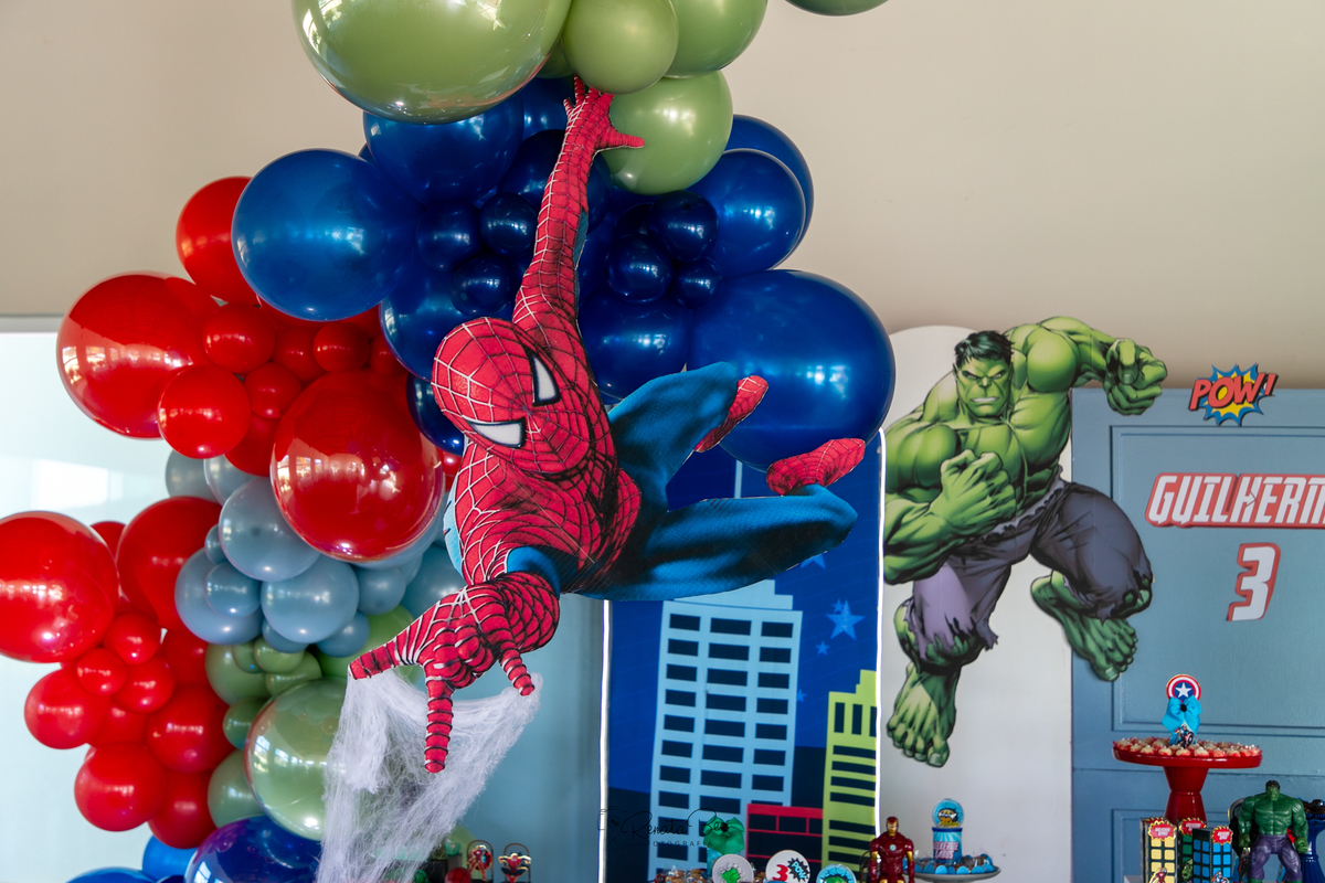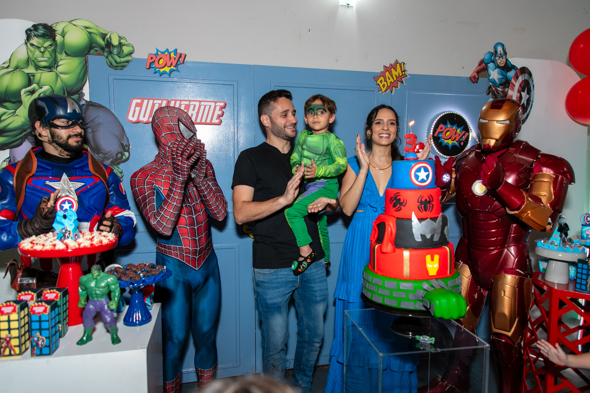 Guilherme comemorou seu terceiro aniversário com uma festa repleta de emoção e aventura! O tema da festa foi 'Super-Heróis', e a diversão estava garantida. A festa estava repleta de decorações incríveis com os símbolos dos super-heróis e balões coloridos. Mamãe Amanda planejou a festa com muito carinho e caprichou nos mínimos detalhes. Os olhinhos do Guilherme brilharam de alegria enquanto celebrava seu terceiro aniversário ao lado de amigos e familiares e pode conhecer pessoalmente seus personagens preferidos. E assim, a festa 'Super-Heróis' se tornou uma aventura inesquecível, cheia de diversão, risadas e momentos especiais.